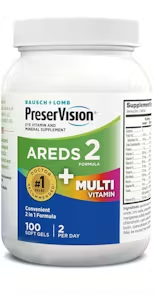 PreserVision by Bausch + Lomb is a vision support supplement formulated with lutein, zeaxanthin, zinc, copper, and the vitamins C and E. It delivers this blend of ingredients in one softgel per day, one aspect our team noted as a plus. However, our team didn’t like the limited range of ingredients in comparison to some of the other products on this list. Additionally, unlike the other products, this supplement also comes with 5 calories per serving.