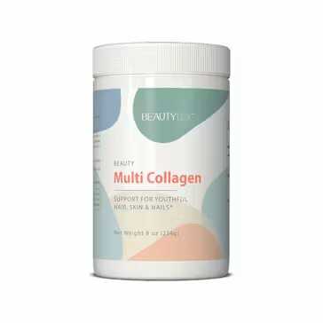 BeautyLux Beauty Multi Collagen is our number two pick. These unflavored collagen peptides are formulated from bovine, marine, chicken, and eggshell membrane collagen to support hair, skin, and nail health. This premium powder features collagen types I, II, III, V, and X which are sustainably sourced from cage-free chickens, grass-fed cows, and kosher, North Atlantic fish.