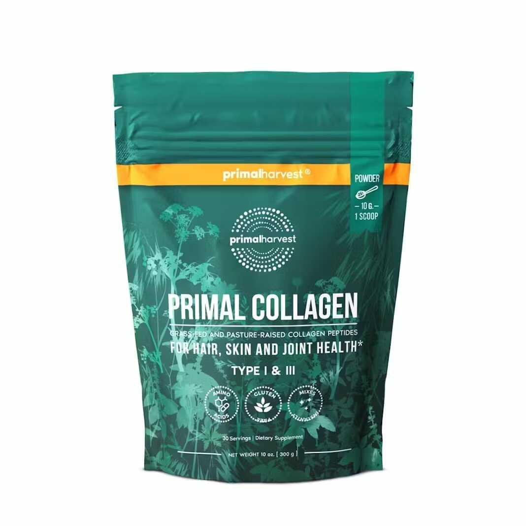 Primal Collagen by Primal Harvest is sourced from the highest-quality grass-fed, pasture-raised bovine. It provides a full spectrum of hydrolyzed types I and III collagen and essential amino acids to help support aging skin. (Though as an extra perk it also provides all-around support for your hair, nails, joints, bones, muscles, and gut.)*